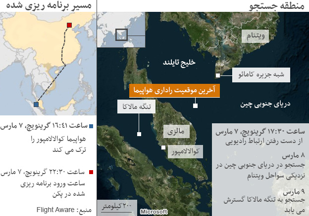 پیشتر مقامات مالزیایی در یک نشست خبری گفتند که رادارهای نظامی، یک شئی ناشناخته که میتواند همین هواپیمای گمشده باشد، را در تنگه مالاکا ردیابی کرده بودند.
