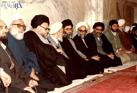 از سمت راست: آیت الله گلپایگانی، آیت الله امامی کاشانی، مقام معظم رهبری آیت الله خامنه ای، آیت الله مهدوی کنی و...