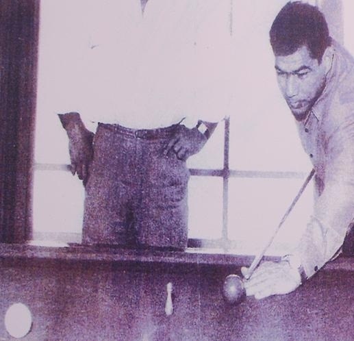 تصویر: غلامرضا تختی مشغول بازی بیلیارد