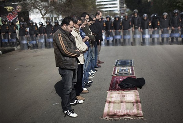 تصویر: نماز جماعت معترضین در مصر در مقابل نیروهای امنیتی