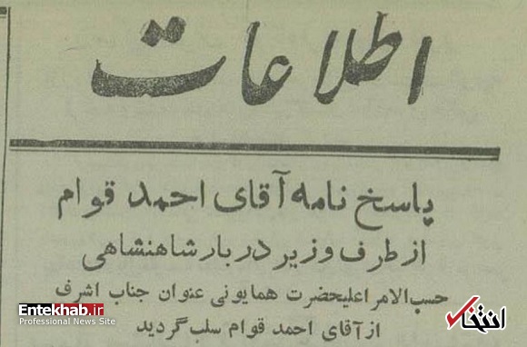 در خاتمه لزوما توجه میدهد که در آتیه باید از عرض این قبیل عرایض که گاهی جنبه تملق و تضرع دارد و گاهی رنگ ریا و تزویر به کلی خودداری نمایید، زیرا بر مفسیدن نمیسزد در امور کشوری که به آن درجه بیعلاقگی به تمامیت و استقلال آن نشان دادهاند عنوان نظری نمایند و سالکان طرق خدمتگذاری کشور را بخواهند با این عناوین از صراط مستقیم باز دارند و، چون خود موجب شدهاید که پرده از روی اعمال و افعال مفسدتآمیز شما برداشته شود و بالطبیعه صلاحیت داشتن خطاب «جناب اشرف» را فاقد میشوید بدین جهت بر حسب فرمان مطاع مبارک از این تاریخ عنوان مذکور از شما سلب میشود. وزیر دربار شاهنشاهی – ابراهیم حکیمی (اطلاعات؛ شنبه ۱۹ فروردین ۱۳۲۹)