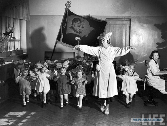 برای کودکان اسباب‌بازی‌های مختلف در هر سن تهیه شده ولی آن‌چه را بیش‌تر می‌بینند و در آن خصوص از طفولیت با آن‌ها صحبت و بحث می‌شود عکس‌های پیشوایان خود لنین و استالین و تاریخچه مصور زندگی آن‌هاست که از چشم باز کردن نسبت به زعمای خود با ایمان پرورش و تربیت شوند. در و دیوار اتاق‌ها پر از نقاشی‌های قشنگ کودکانه بود ولی هیچ اتاقی نبود که از عکس‌های مختلف لنین و استالین خالی باشد.