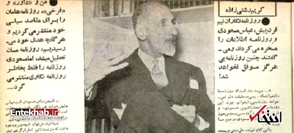 در حقیقت این یک نوع سبک آمریکایی در کار روزنامهنویسی بود که مسعودی معمول کرده بود. من یا فرخی یا داور روزنامه را برای مقاصد سیاسی خودمان منتشر میکردیم. ما هریک هدفهایی داشتیم و احساس میکردیم که از تریبون مطبوعات میتوانیم به این هدفها برسیم. از همین روی تن به کار انتشار روزنامه میدادیم و هر وقت یکی موفق میشد تا به هدفهایش برسد روزنامه را تعطیل میکرد، به همین صورت داور وقتی به آمالش رسید دست از روزنامهنویسی برداشت و راه دیگری را در پیش گرفت؛ اما مسعودی عقیده داشت که روزنامه باید حاوی اخبار مملکتی باشد. او دلش میخواست هر خبری که در گوشه و کنار کشور وجود دارد در روزنامهاش منتشر شود و به همین علت او روزنامه را به دنیای وقایع و حوادث اختصاص داده بود و در کارهایش نظری نداشت، جز روزنامهنگاری به خاطر روزنامهنگاری...