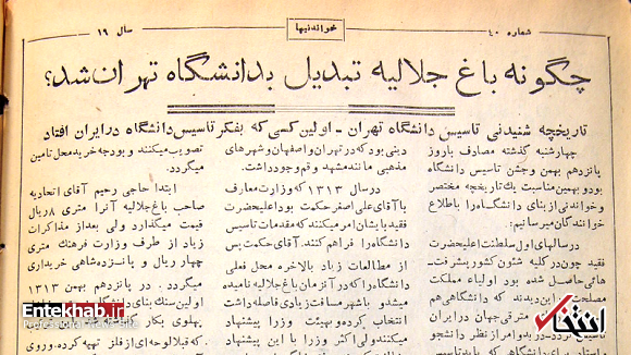 سرویس تاریخ «انتخاب»؛ روز دوشنبه ۱۵ بهمن ۱۳۱۳ سنگ بنای دانشگاه تهران در باغ موسوم به جلالیه گذاشته شد و امروز درست ۸۷ سال از آن روز میگذرد. مجلهی خواندنیها در شمارهی ۴۰ خود به تاریخ ۱۸ بهمن ۱۳۳۷ به مناسبت ۲۴ سالگی تاسیس دانشگاه تهران گزارش جالبی از چگونگی انتخاب زمین دانشگاه منتشر کرد که خواندن آن خالی از لطف نیست: