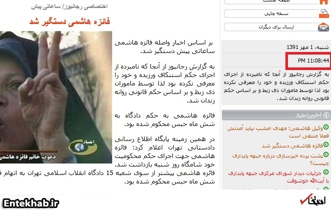 فائزه هاشمی رفته اند و او را برای اجرای حکم بازداشت کرده اند» بررسی یک سایت خبری حامی دولت، سئوالاتی را به وجود می آورد.