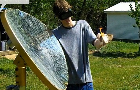 اين جوان كه اريك جكمين نام دارد، يك ديش ماهوراه فايبر گلاس معمولي را با 5800 قطعه كوچك آينه پوشش داده است. هنگامي كه اين دستگاه به درستي نصب مي‌شود، مي‌تواند يك نقطه حرارتي به ابعاد چند سانتي‌متر با شدت انرژي 5000 بار انرژي خورشيدي ايجاد كند.
