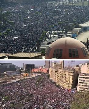 شمار شرکت کنندگان در تظاهرات میدان التحریر قاهره با وجود بسته شدن همه راههای منتهی به این میدان از دو میلیون نفر فراتر رفت.